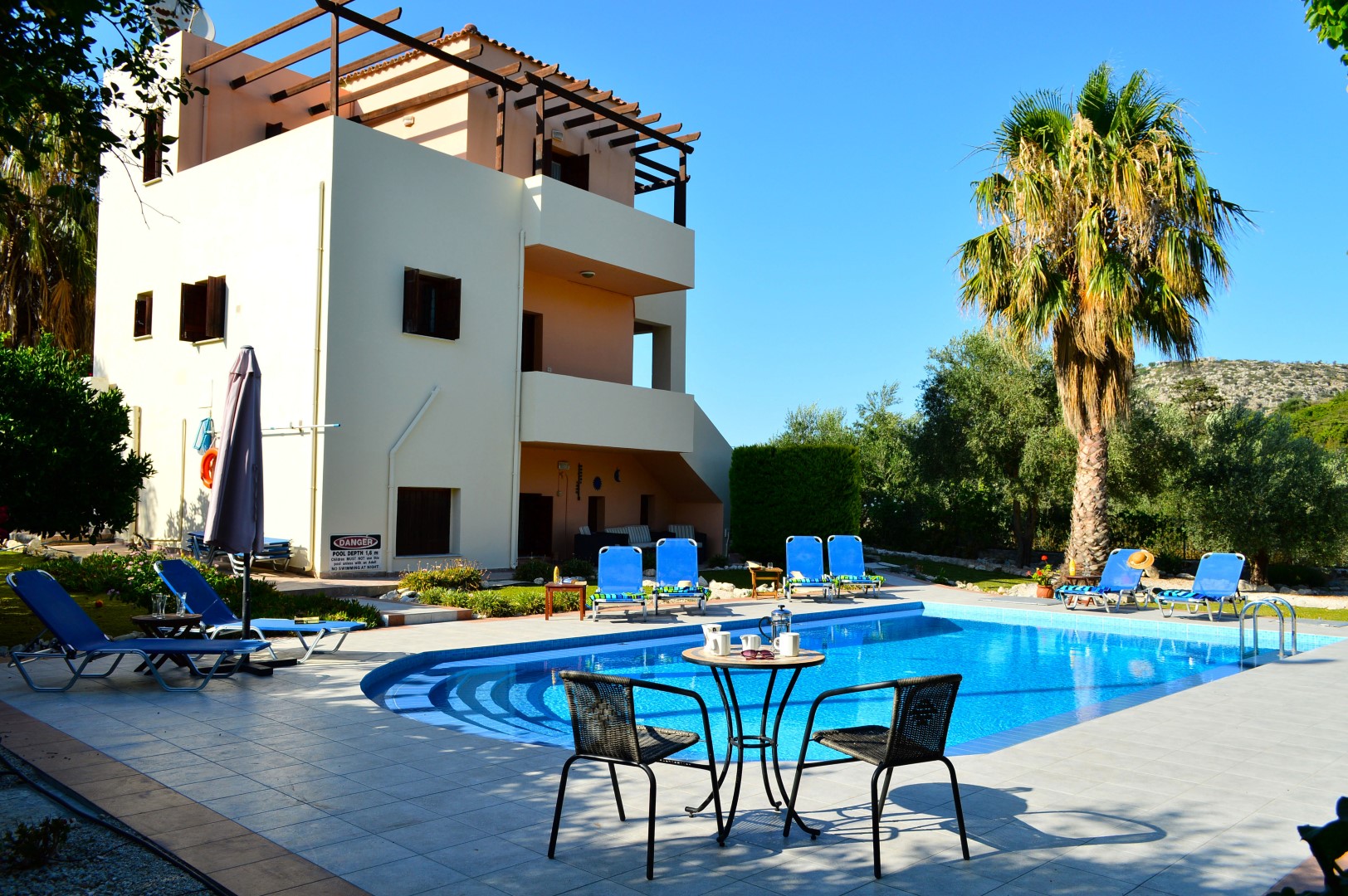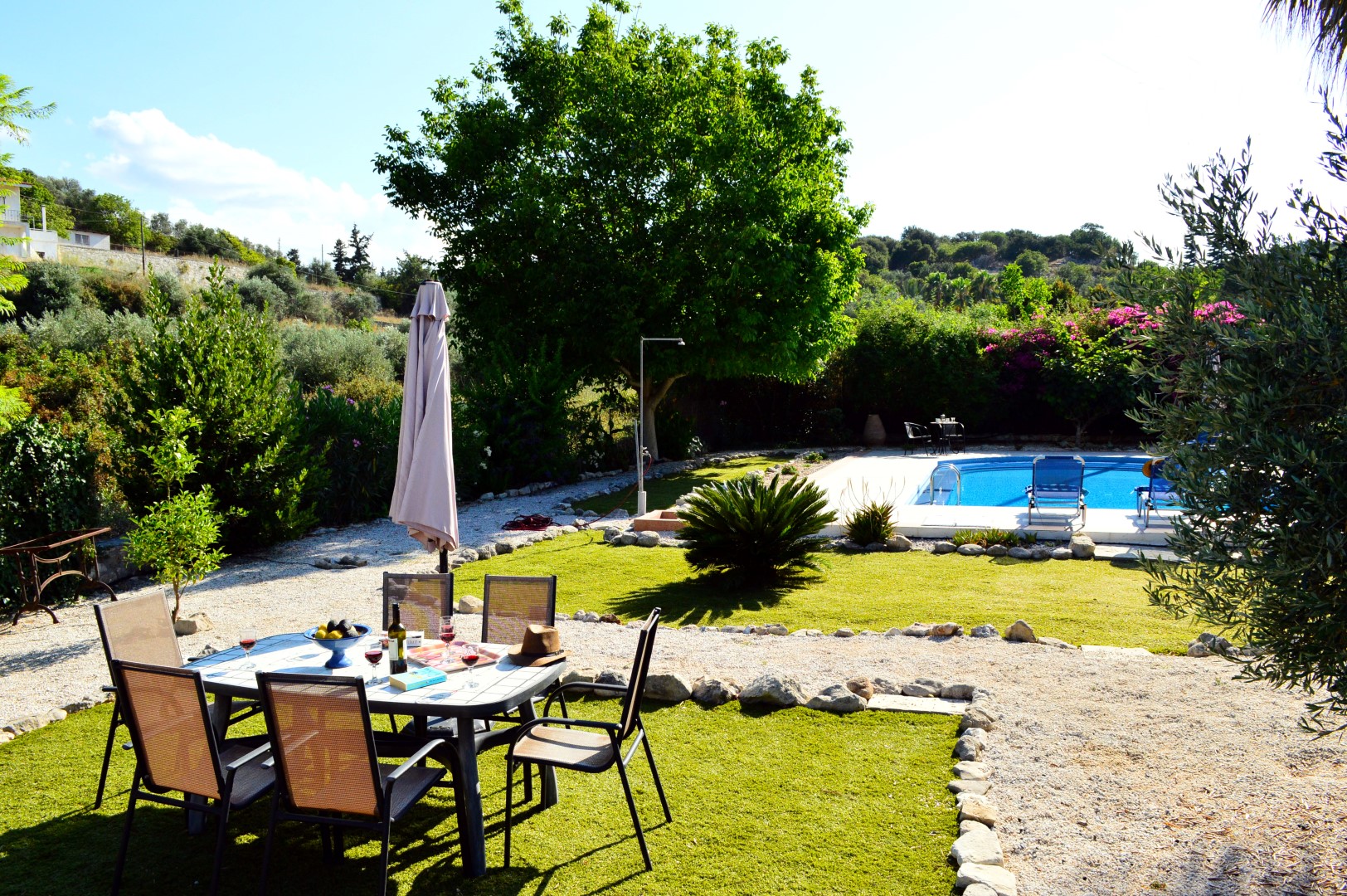 Situated in between Almyrida and Gavalochori, Villa Dorsey is a comfortable villa standing in a large plot with a private pool and mature gardens. The surrounding area is very peaceful and picturesque with olive groves, vineyards and fruit trees and yet within 10 minutes walk you can be in the bustling seaside village of Almirida.