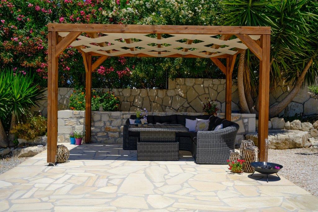 The villa is single storey with a magnificent, spacious roof terrace (with table and chairs) which provides another sun bathing area apart from the terraces around the pool.