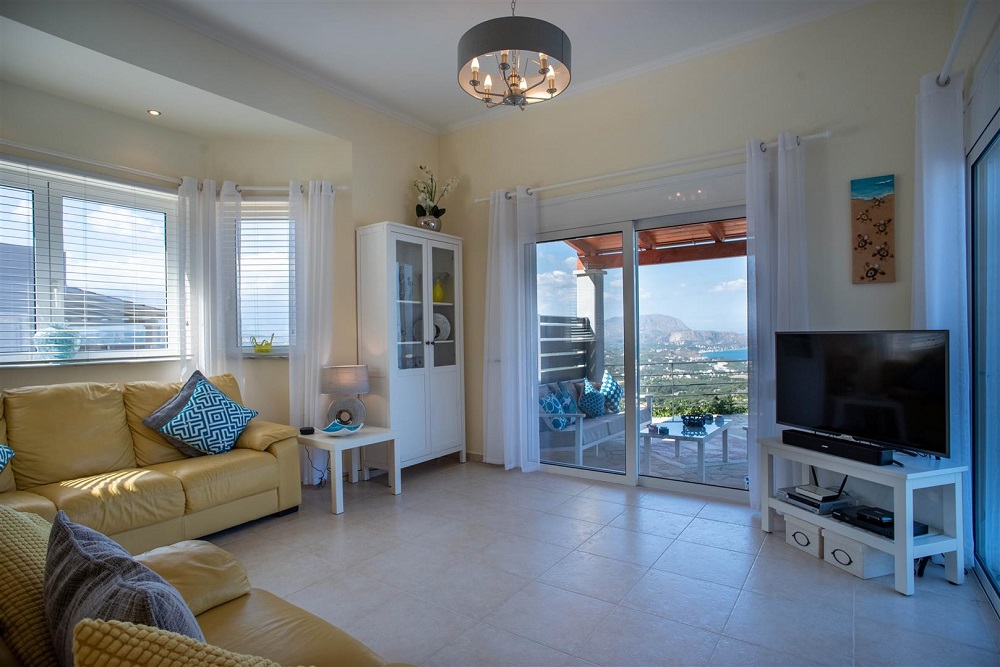 Located on the hillside allowing magnificent uninterrupted views of Souda Bay, Villa Sarah is in an enviable position to showcase the wonderful sea, White Mountain and countryside panorama. In an evening, due to its elevated setting, guests can also enjoy the magical sunsets together with the twinkling lights in the villages beyond. This 3 bed 2 bath 'split-level' villa is beautifully presented and maintained by the current owners and offers very comfortable accommodation in a peaceful location with the local amenities of Plaka only a short drive away.