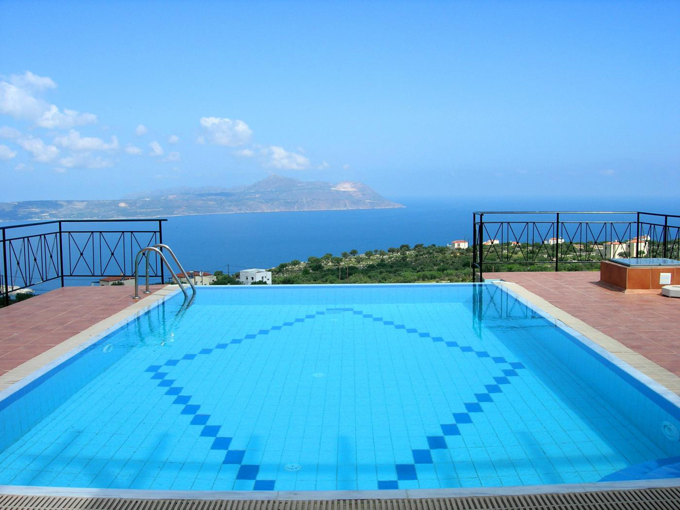 Outside there is a 40m2 infinity style swimming pool surrounded by sunbathing terraces all of which have stunning views across Souda Bay, of the White Mountains and Drapanos Hill. The garden surrounding the villa is becoming established with a variety of shrubs and trees.