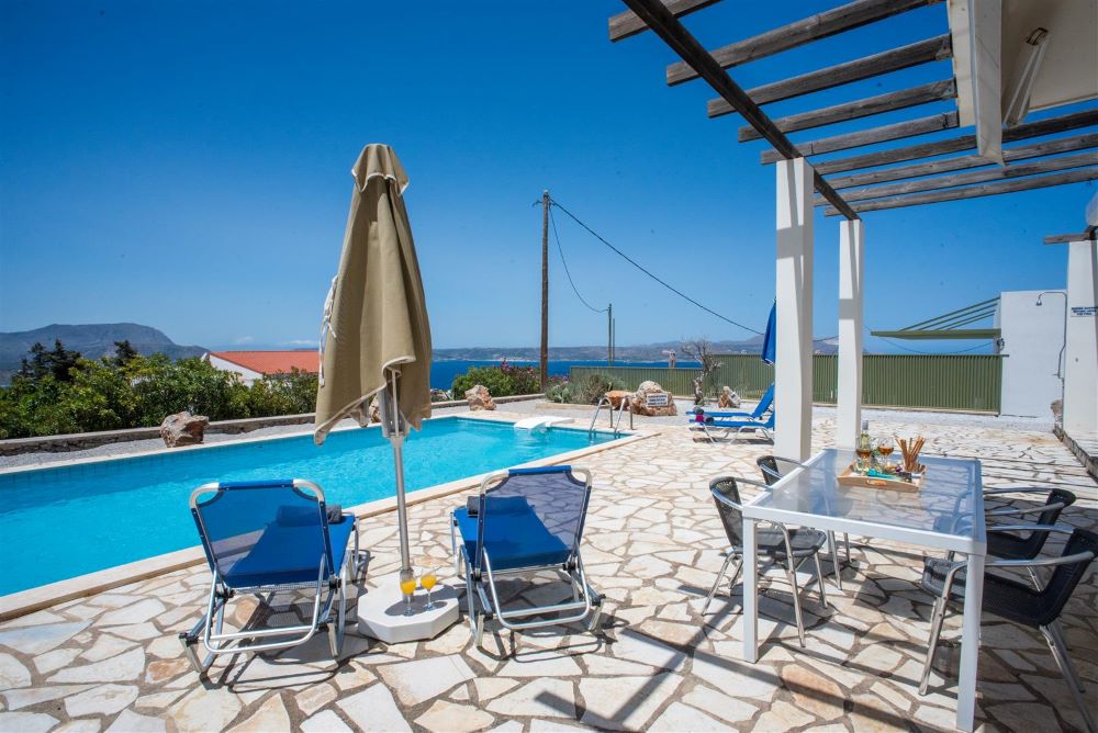 We had an amazing time and loved Villa Skye; the views, the pool, the villa itself and the location. Everything was perfect. The directions were spot-on; the place was immaculately clean on arrival and the outdoor spaces were spectacular. The views west to the mountains and north to the sea were amazing both from the pool deck and especially from the upstairs terrace. The taverna in Kokkini Chorio was great. We loved swimming in the waves at Almyrida and the snorkelling at Koutalas beach was among the best I've ever found in Greece - August 2019.