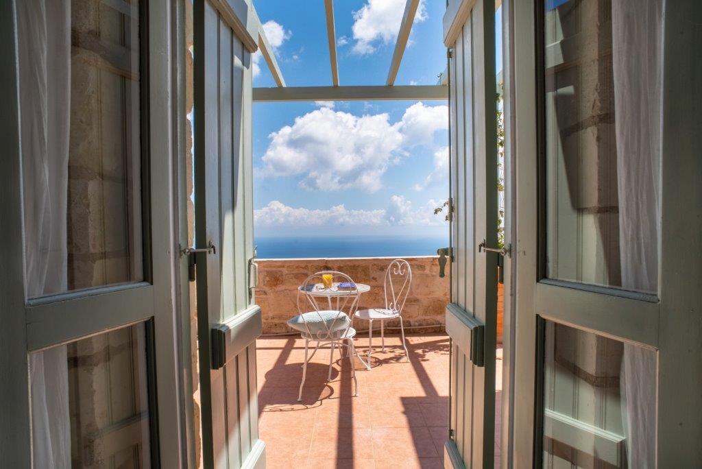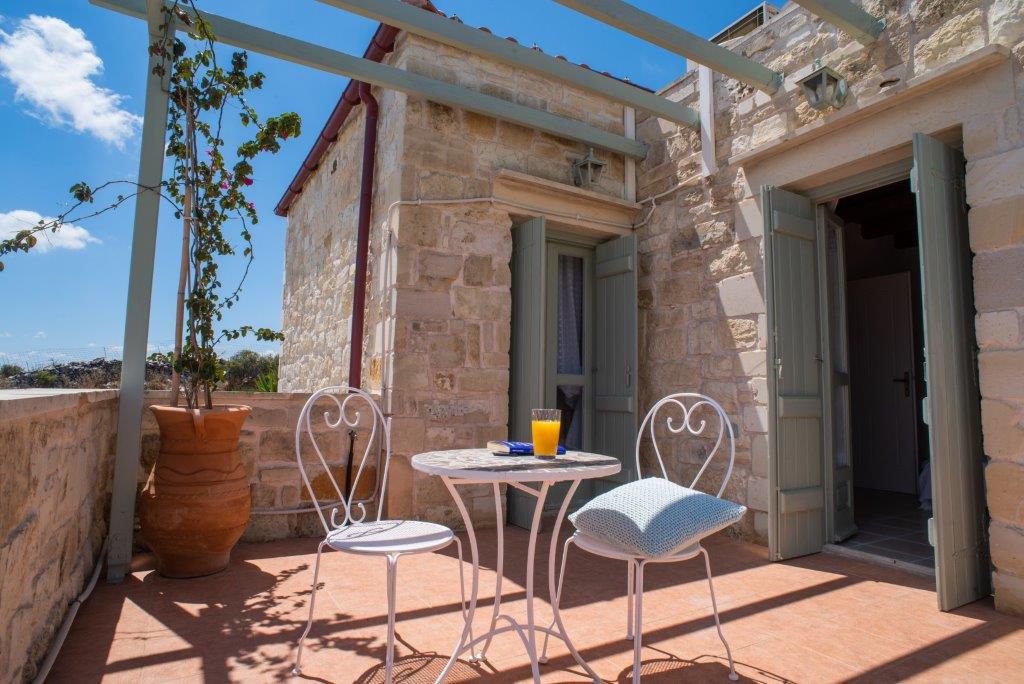 Built with light honey-colored stone, Villa Antheia blends traditional style with modern comforts. The villa’s wooden shutters and traditional wooden ceilings on the ground floor add to its rustic charm. The ground floor is equipped with electric fans to keep you cool, while the upstairs bedrooms are air-conditioned for your comfort.