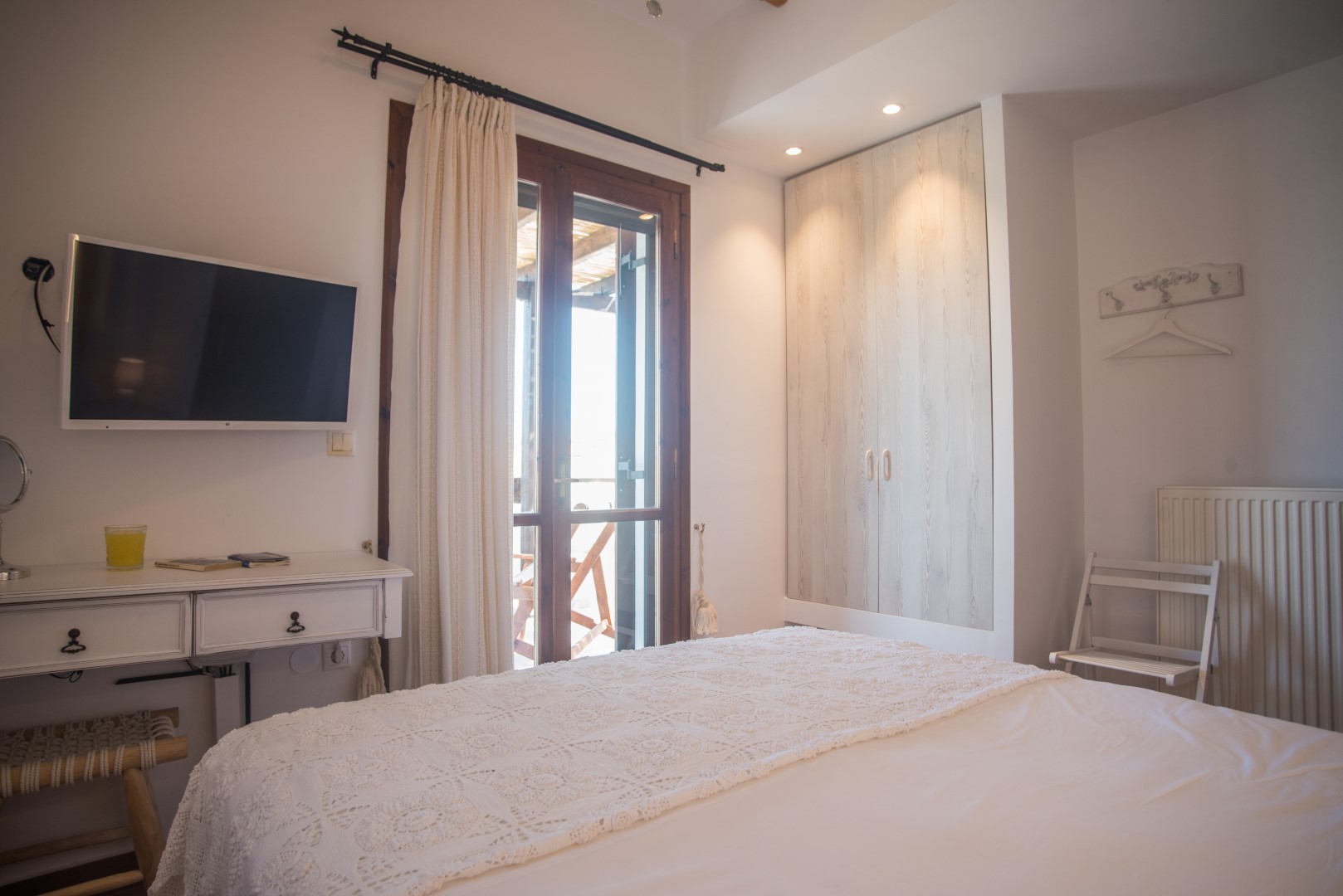 Both of the lovely air-conditioned bedrooms, one double and one twin, are on the first floor where the main shower room, with a modern walk in shower with hydro massage system, is also situated. Both bedrooms have ceiling fans for those who prefer to keep cool without air conditioning and both have doors fitted with mosquito nets which open up to an extensive balcony. This balcony has glass panel inserts so that you can enjoy views of the sea whilst you lie in bed. For that further bit of indulgent luxury, both rooms have a smart TV installed.